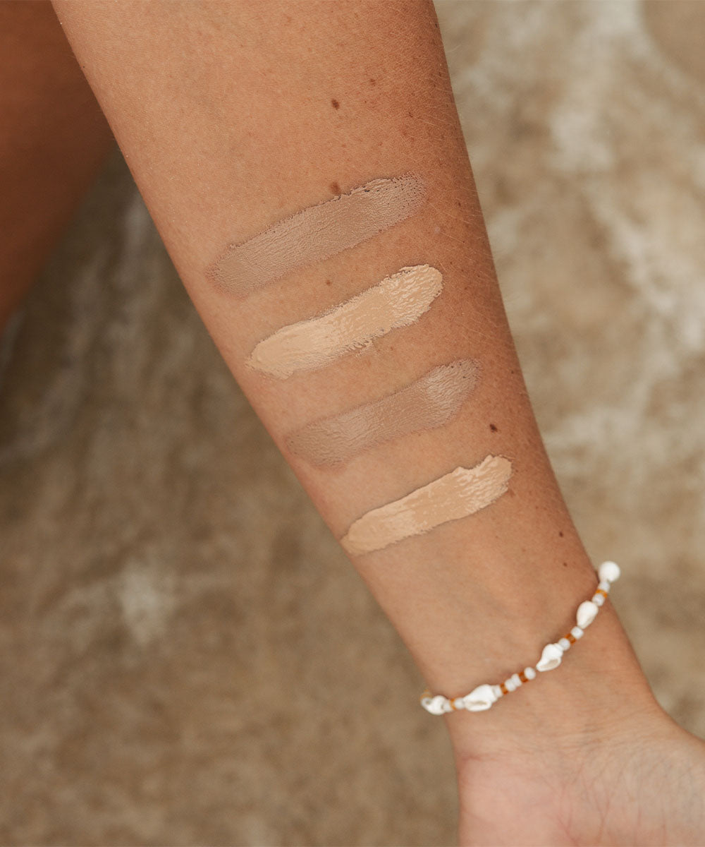 Ricinus Communis (Castor) Seed Oil*, Zinc Oxide (Non - Nano) 38%, Theobroma Cacao (Cocoa) Seed Butter*, Copernicia Cerifera Cera (Carnauba)* Brazil, Cocoa (Powder)*, Ricinus Communis (Castor)* Seed Oil hydrogenated, Butyrospermum Parkii (Shea) Butter *, Simmondsia Chinensis Seed (Jojoba) Oil*, Persea Gratissima (Avocado) Oil*, Tocopherols (Vitamin E), Iron Oxide CI.77491 CI.77492 CI.77499* Denotes certified organic